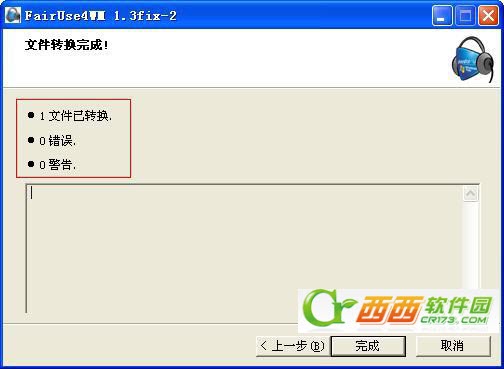 8、按“下一步”,破解完成。提示:1个文件已转换,0个错误,0个警告。