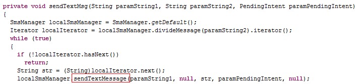 (图2 调用系统发送短信的方法)