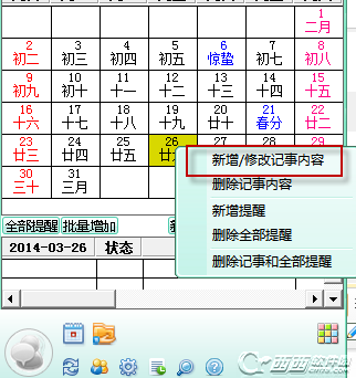 日程提醒功能;它可以实现年、月、周、日、小时、分、秒的提醒,提醒同时可以执行动作(提示窗口、播放音乐、执行指定程序、关机等)。甚至每年的第几个月提醒、第几月的星期几提醒等特殊的提醒。