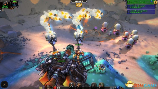 《机器人组装炮塔》这是一款集第三人称射击,动作,塔防于一身的游戏。在游戏中,你的宇宙飞船坠毁在生疏星球上,你周围是可怕的新鲜的外星生物,你要抓紧时间修理和拼装各种模块化炮塔进行防护。