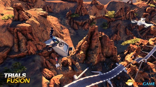 《特技摩托:聚变》是由RedLynx和育碧上海和基辅一同开发的。是XBLA游戏《特技摩托:进化》的续作。游戏包括了具有挑战性的物理游戏特色,同时还将包括一个编辑器模式,玩家将可以自己制作赛道,然后利用赛道中心同其他玩家分享自己的作品。