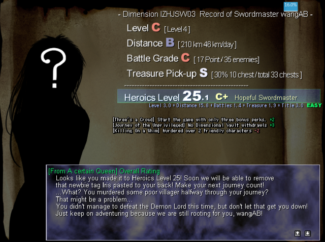 但是总的来说游戏的机制还是非常出色的,也是相当有趣的,而游戏角色每次死亡以后,系统都会根据玩家冒险的表现给予一评价,并和玩家在该地图中最远的一次冒险记录做对比。(这不是活脱脱的日式rpg版本的像素鸟嘛),偶然打出一次最高纪录的时候还是非常有成就感的。