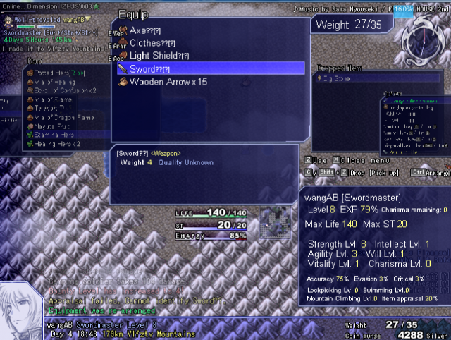 这样的游戏设计,让整个游戏的策略性十足,有时候担心甚至不是能否消灭怪物,而是,那该死的负重为什么那么少,弄的自己都要忍痛割爱的丢掉下重要的装备。
