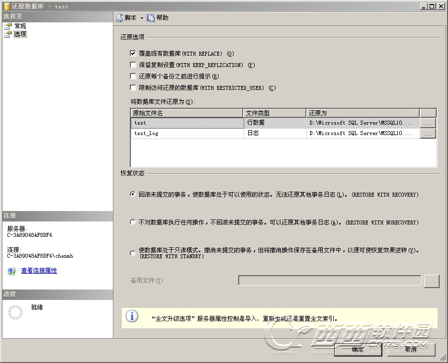 在完整恢复模式或大容量日志恢复模式下,必须先备份活动事务日志(称为日志尾部),然后才能在SQLServerManagementStudio中还原数据库。有关详细信息,请参阅如何备份事务日志(SQLServerManagementStudio)。若要还原已加密的数据库,您必须有权访问用于加密数据库的证书或非对称密钥。如果没有证书或非对称密钥,数据库将无法还原。