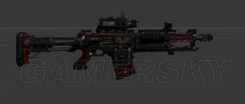 敌人用的突击步枪,为3连发制式,连续发射3发后有短暂的停顿(为啥这么设定?因为这样发射的声音会比较好听),从截图可以看出,武器还是很具有朋克风格,只是尼玛在场景中,根本不会有人关注到武器,因为敌人离远就攻击,把敌人干掉后,武器自动消失,根本没有给大家近距离观赏这把朋客风格的武器的机会!在这里贴张近照,算是一点点小弥补!