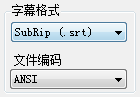 在此你可以选择字幕格式。 第一个下拉列表显示了字幕格式。 SubRip(扩展名为”.srt”)是当今使用最广泛的格式,因此建议保存字幕为此格式。 先前的SubRip仅为文本格式,但近年来带有HTML标签的也常见。 特别是斜体以及字体标签使用得最广。 需要查看支持SubRip字幕格式的播放器列表可以到这里。 在多数情况下可以自动检测文件编码。 ANSI为较早的格式,也是如今常见的格式,但是它需要你的系统必须具有特定的区域性环境。 UTF-8是推荐使用的新字幕格式,它可以比ANSI更好的处理非英文字符,而且无需像Unicode那样为每个字符分配两个字节,另外也不需要特定的区域性环境。