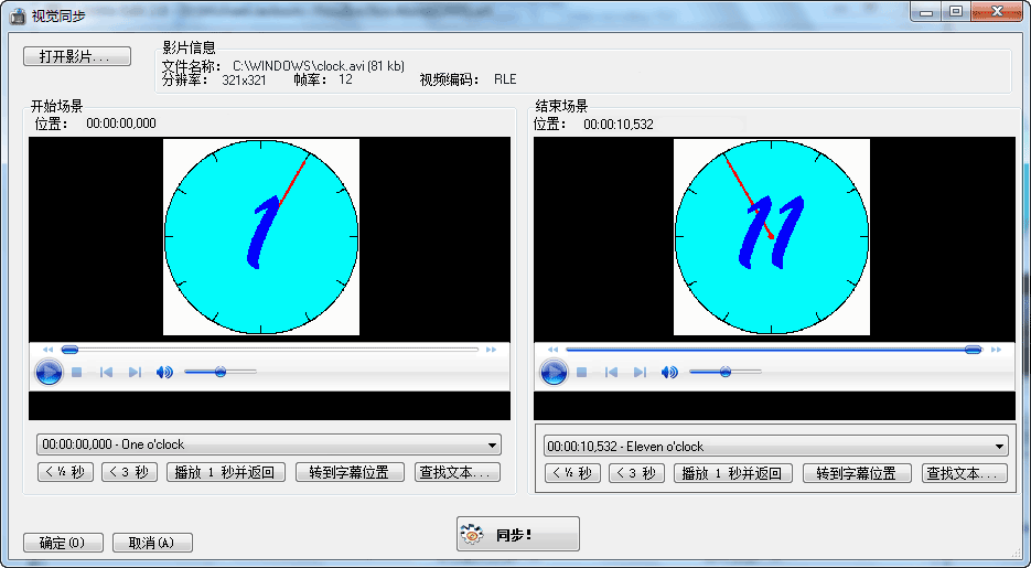 视觉同步是一种非常简单地同步带有视频的字幕文件的方法。开始场景匹配一个开始字幕行, 再到结束场景匹配一个结束字幕行, 按下”同步!”按钮 – 这样就行了