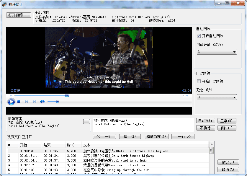 2、点击“打开视频文件”(选择要加字幕的视频文件 )并复选上“视频播放时同步列表视图”->