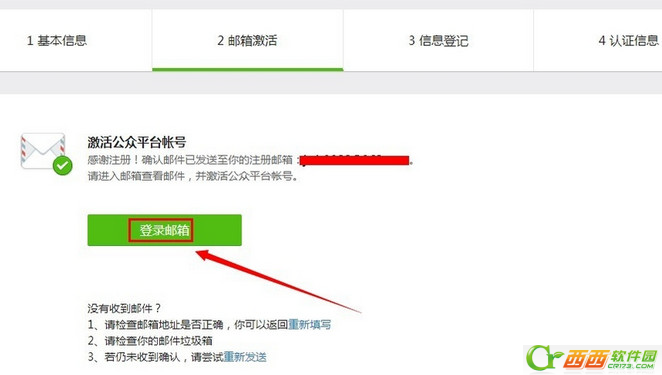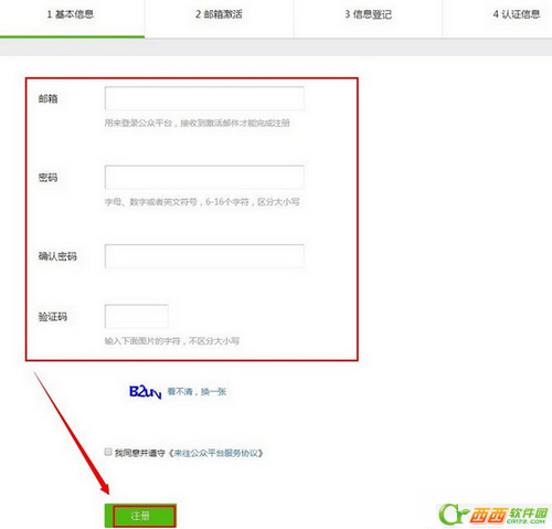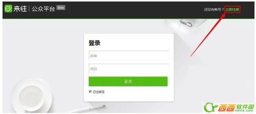 2、输入你的邮箱地址,还有来往公众平台登陆密码。【注册】