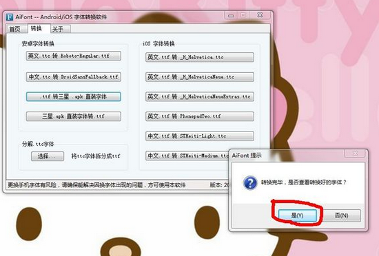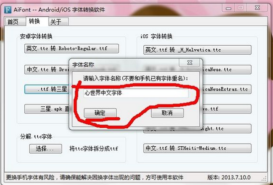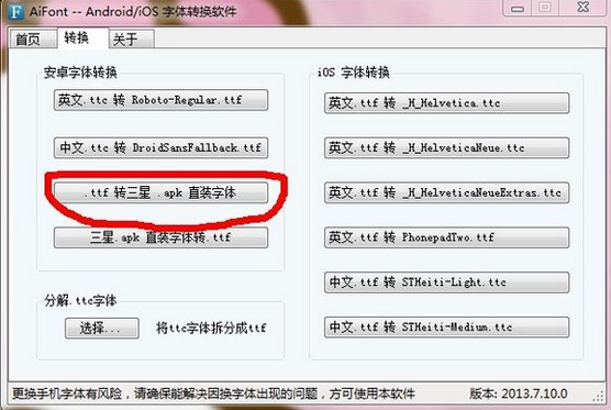 1.使用.ttf转.apk 以及.apk转.ttf 功能需安装JAVA组件,下载地址:http://www.java.com/zh_CN/download/判断JAVA组件是否正确安装的方法:从电脑左下角打开 开始->所有程序->附件->命令提示符,输入 java,按回车键。如果显示‘java’不是内部或外部命令,也不是可运行程序,则表示未正确安装。如显示一系列 java 使用说明就是正确安装了。