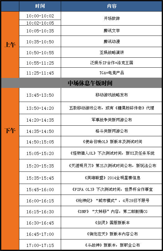 在游戏业务层面,腾讯游戏在手游领域去年交出了亮眼的成绩单,哪些全新移动游戏即将登场?腾讯会推出怎样的新品持续深化端游市场?在文学业务层面,2013年9月10日腾讯文学正式推出,而今酝酿半载即将全面发力2014之际,将会公布那些重大举措?在动漫业务层面,作为中国最大的正版动漫平台,腾讯动漫该用怎样的商业模式打通产业链上下游?另外,继动视暴雪、NCSOFT、卡普空、集英社、万代南梦宫之后,腾讯互娱还将与哪些巨头展开战略合作?重磅悬念今日即将全部揭晓。