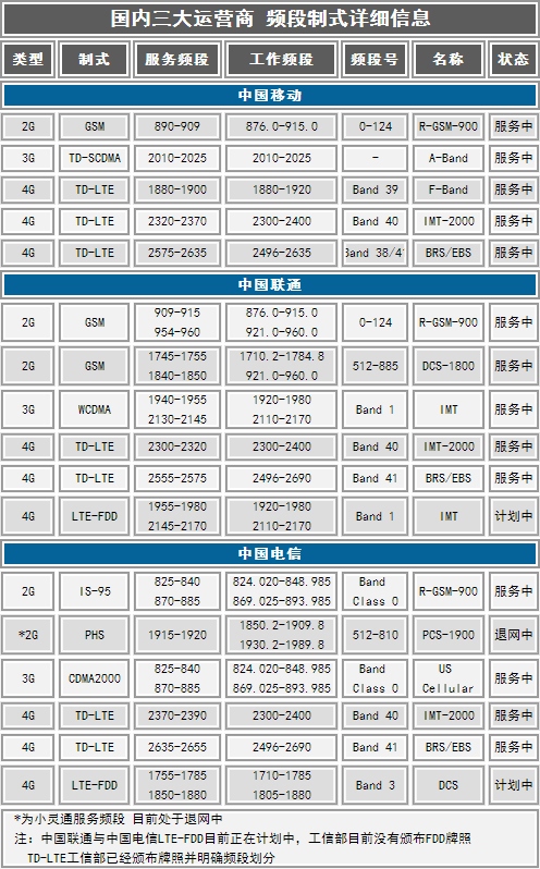 首先我们需要区分出究竟是2G、3G还是4G网络类型,接下来再逐一讨论相应网络类型的网络制式。目前2G网络三大运营商均是GSM制式,而3G网络联通为WCDMA、电信为CDMA 2000、而移动则为TD-SCDMA.接下来对于4G LTE网络来说,目前工信部对三家运营商仅仅颁发了TD-LTE的牌照,并且确定了频段的划分。