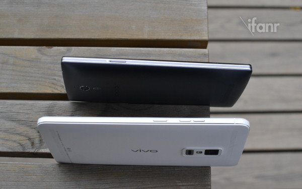 而像oppo Find 7和vivo Xplay3S则是背部弧线与侧面直线的组合。而这里有所不同的是,oppo Find 7背部到侧面的过渡很自然,但vivo Xplay3S追求设计感,相当于把侧面,顶部和底部稍微突出了一部分,在背部和侧面形成了一个小的“阶梯”,并且由于vivo Xplay3S巨大的机身,使得vivo Xplay3S握起来感觉不是很舒服。