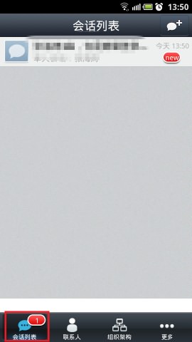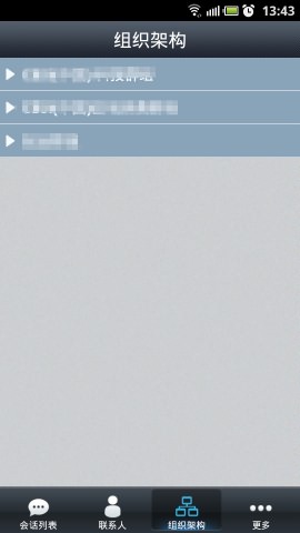 登录后会看到底部有四个基本功能键:会话列表、联系人、组织架构、更多。