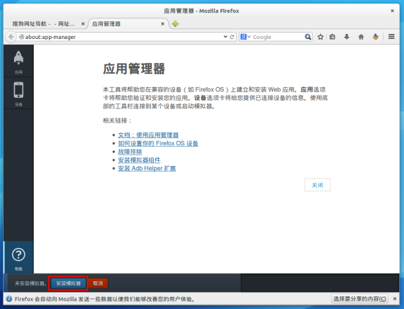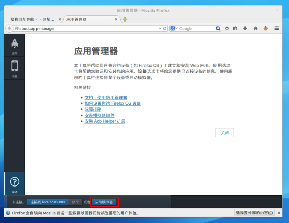 模拟器启动,要使用模拟器必须保持火狐浏览器开着!