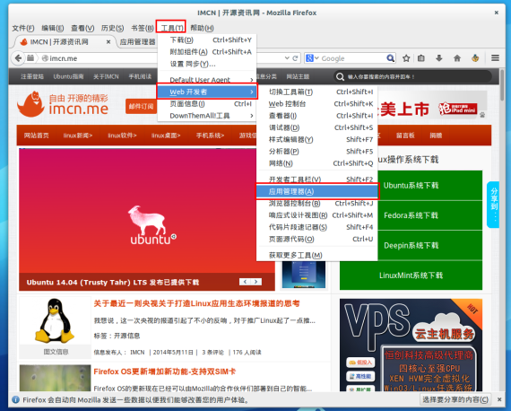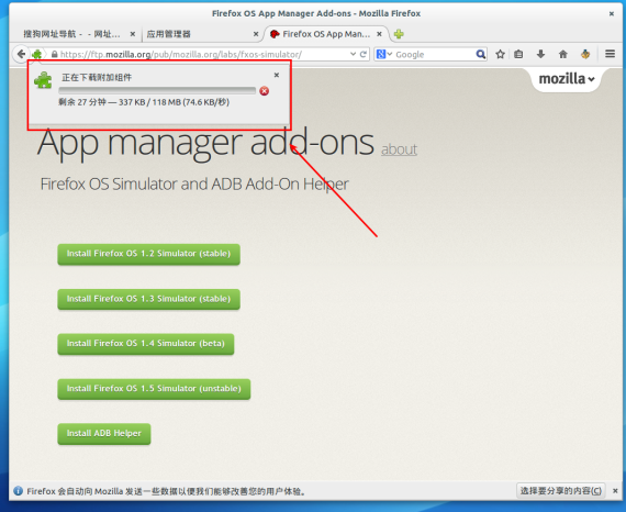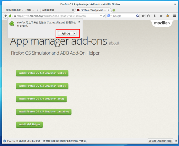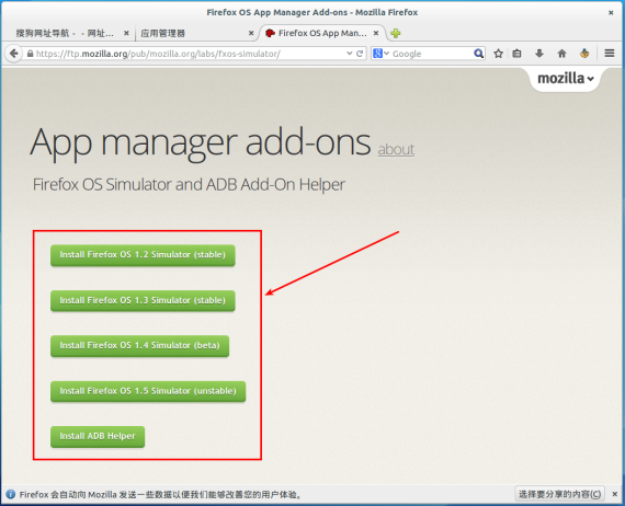 FireFox 29 已经发布有一点时间了,界面上有一些大的改动,但是仍然不会影响我们使用,在 FireFox 29 上安装 FireFox OS 模拟器其实和以前的版本一样很简单,只是模拟器包含的版本更多了,有 FireFox OS 1.2 稳定版、FireFox OS 1.3 稳定版、FireFox OS 1.4 测试版本、FireFox OS 1.5 测试版本。