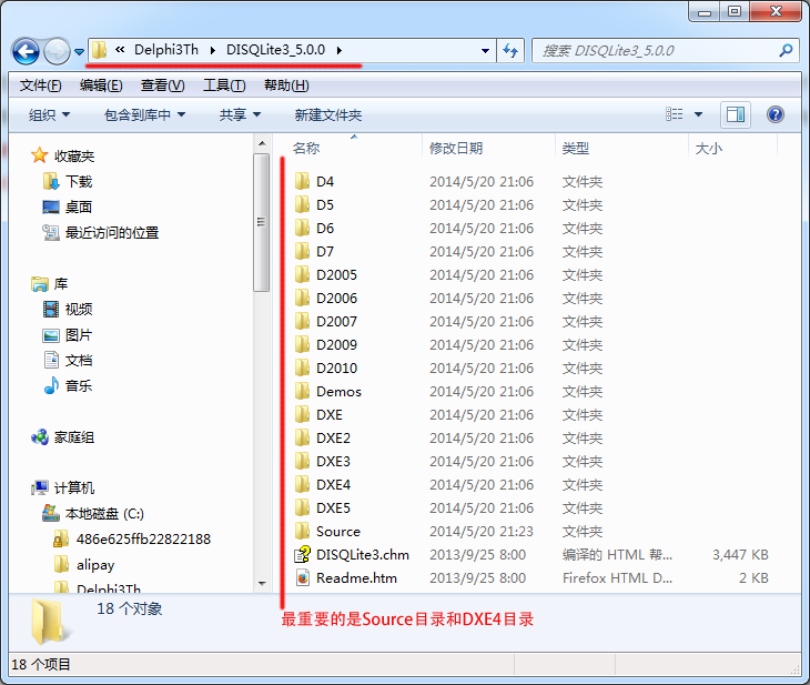 1、DISQLite3组件,当然是收费的版本,大家可以百度寻找Crack版本哟,我这里安装的是DISQLite3 5.0.0的EXE安装版本,我安装在了C:\Delphi3Th\DISQLite3_5.0.0目录中,目录结构如下:
