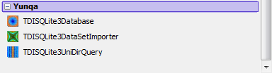 6、下面可以建立一个VCL Forms Application,然后在Tool Palette组件面板中选择Yunqa中的TDISQLite3Database组件放到Form1中,然后开始编译运行,如果一切正常,说明组件安装成功了。否则请你从头再来,看看哪一步忘记做了。