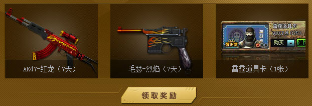 cf双节大礼包内涵AK47-红龙(7天)、毛瑟-烈焰(7天)、雷霆道具卡(1张)等奖励!