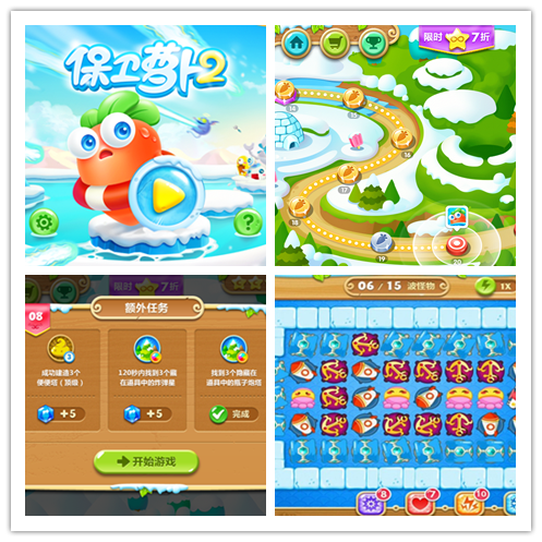 “保卫萝卜”可以说是目前手游圈里备受追捧的一款策略塔防游戏。在其最新版本《保卫萝卜2:极地冒险》中,开启了两大游戏主题:冰川和沙漠,游戏总关卡更是高达100关,精心编排的关卡由易到难,循序渐进,让新手玩得愉快,高手玩得过瘾。