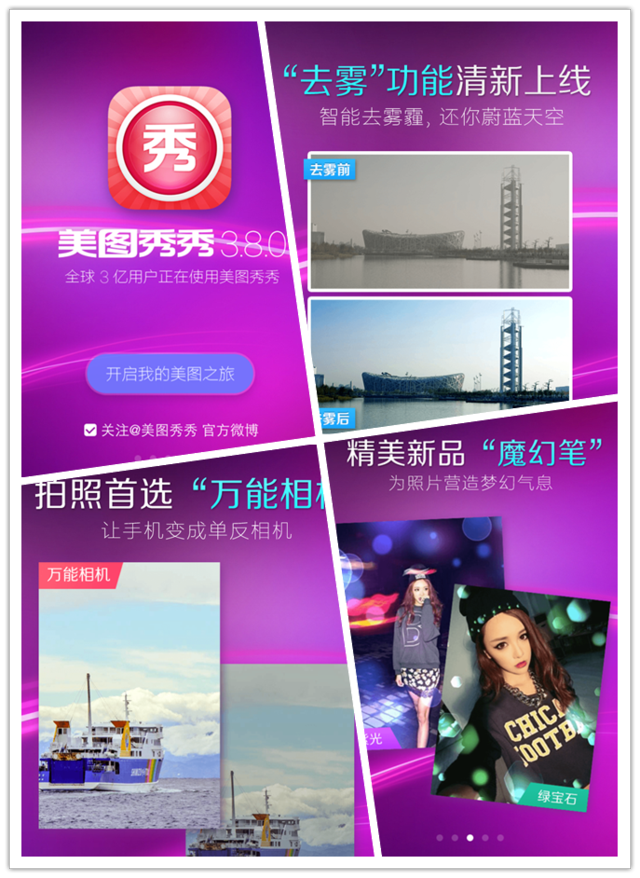 端午节假期虽然不长,但是如果能在城市周边来个短途自驾游还是极好的。无奈每次外出拍照,大好景色都被可恶的雾霾笼罩,大煞风景。这时候,《美图秀秀》能派上用场了,它可以让你眼前的景色更清晰,还你明亮世界!《美图秀秀》除了图片美化、人像美容、拼图切图等众所周知的功能,最近又新加入了一个全新应景儿的“去雾”功能,可以智能去掉雾霾,还你蔚蓝天空!