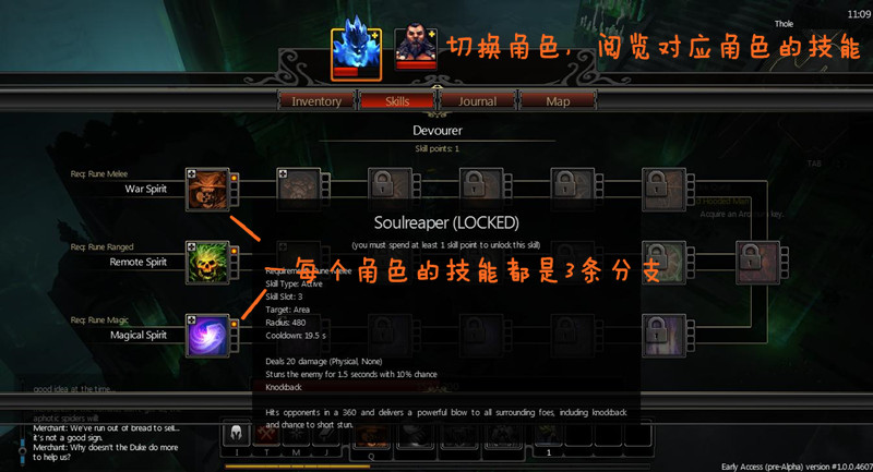 在屏幕顶部可以切换噬灵者或人类寄主,以观看他们各自的技能。
