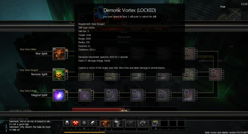 恶魔漩涡:需要符文远程武器;被动技能;目标敌人;范围影响(半径250);持续时间2秒、冷却时间19.5秒;降低敌人的攻击速度以及行进速度30%(3秒内)、造成27点魔法伤害。