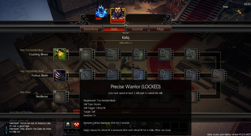 撕裂伤口:需要双手剑;主动技能;范围攻击(半径500、弧度120°);冷却时间为5.9秒;造成26点物理伤害、造成7点伤害/秒(3.2秒内)、带击退效果。
