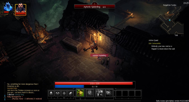 沿着台阶往西北面走去,途中会遇到一群小蜘蛛,使用卡利戈的大锤技能能够大范围快速处理掉这些小家伙(暂不切换为噬灵者,因为之后一路上的敌人都相当强悍)。