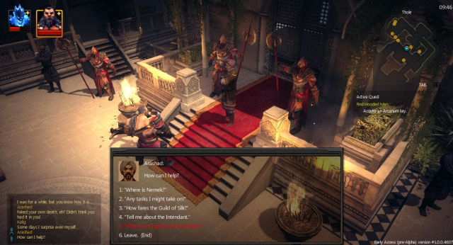 接着去到北面的庭院内,与那儿的老大埃拉沙特对话,选择“谁持有秘门的钥匙”,他会告诉卡利戈,也许钢之公会的人会有一把钥匙。
