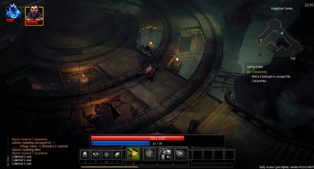 step6.进入到圆盘阵内,会遇到一群蜘蛛的袭击,是用狂战士的大范围锤击对付他们,而且需要再空余的时间内,按住空格键让灵魂值填补一下HP。