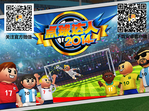 点球梦之队,爽翻世界杯!点翼科技全球首款实时点球对战手游《点球达人2014》活力内测全渠道首发!Q版人物形象、活泼欢快的音乐、丰富的对战模式、海量搞怪道具、前所未有的个性养成等海量玩法High翻天,让你在指尖上玩转足球!