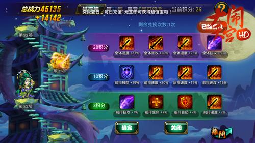 当然,想冲击通天塔的高层关卡,除了不用扫荡和个人战斗力外,BUFF的兑换次数和积分在其中发挥着至关重要的作用。举个例子,假设大闹君有28个积分,只有1次兑换BUFF的机会,那就选择28积分的BUFF兑换。假设大闹君有28个积分,有2次兑换BUFF的机会,最大价值是选择2次10积分的BUFF兑换,也可以选择兑换1次28积分的BUFF,保留1次兑换机会。原则上消耗BUFF兑换积分优于BUFF兑换次数,在闯关失败前把所有积分和次数全消耗完。