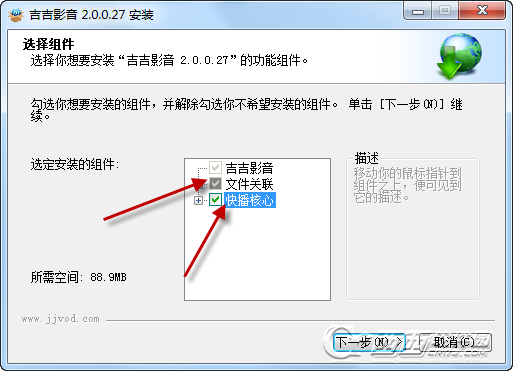 2、然后再安装的时候,下面会显示快播核心,我们可以点击勾上。