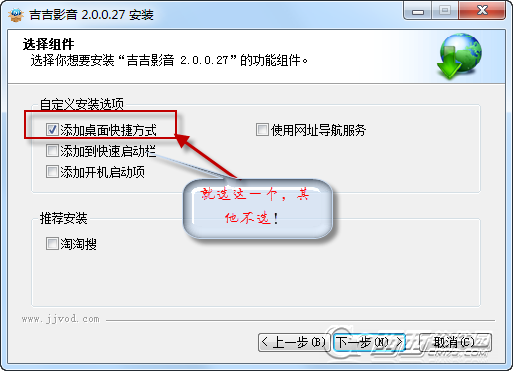 下面的选项,只要选择“添加桌面快捷方式”即可,其他不用选!