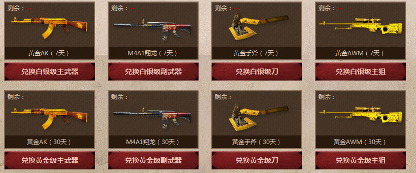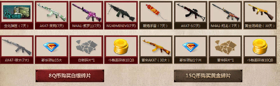 消耗白银和黄金碎片可以兑换暑假黄金武器套装,每种道具数量有限,先换先得!本活动解释权归腾讯所有。