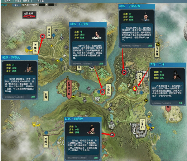 下图是五个试炼的位置。