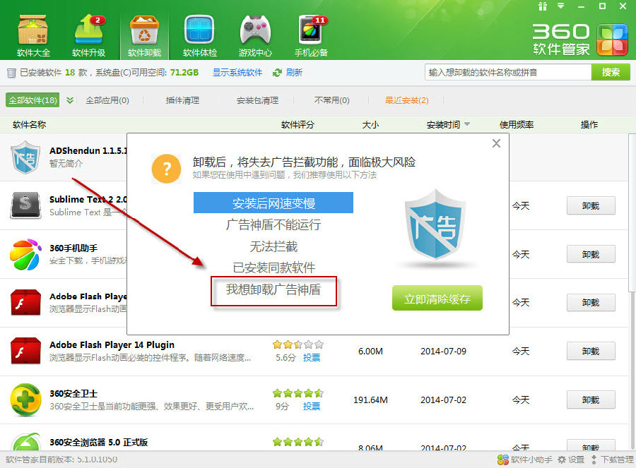 注意勾选我想卸载广告神盾
