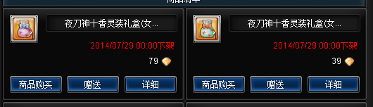 以十香的时装为例,左边为十香灵装衣服,右边为灵装头发,价格分别为79点卷,39点卷。