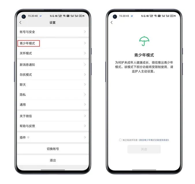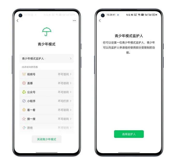 点击青少年模式监护人,从微信通讯录中找到你自己,发送请求。