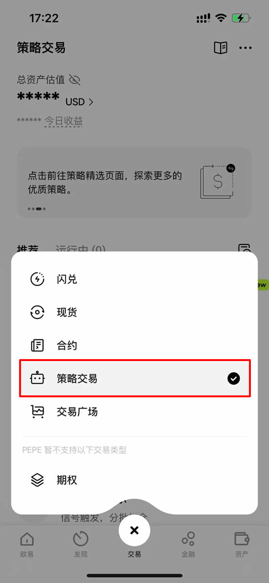呼出交易菜单后,请点击策略交易选项
