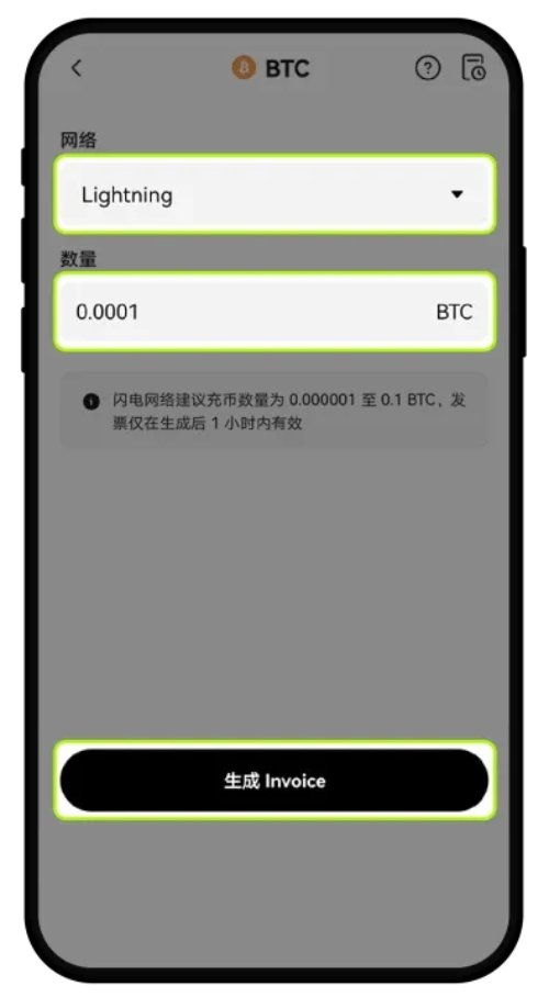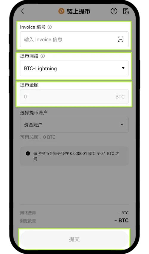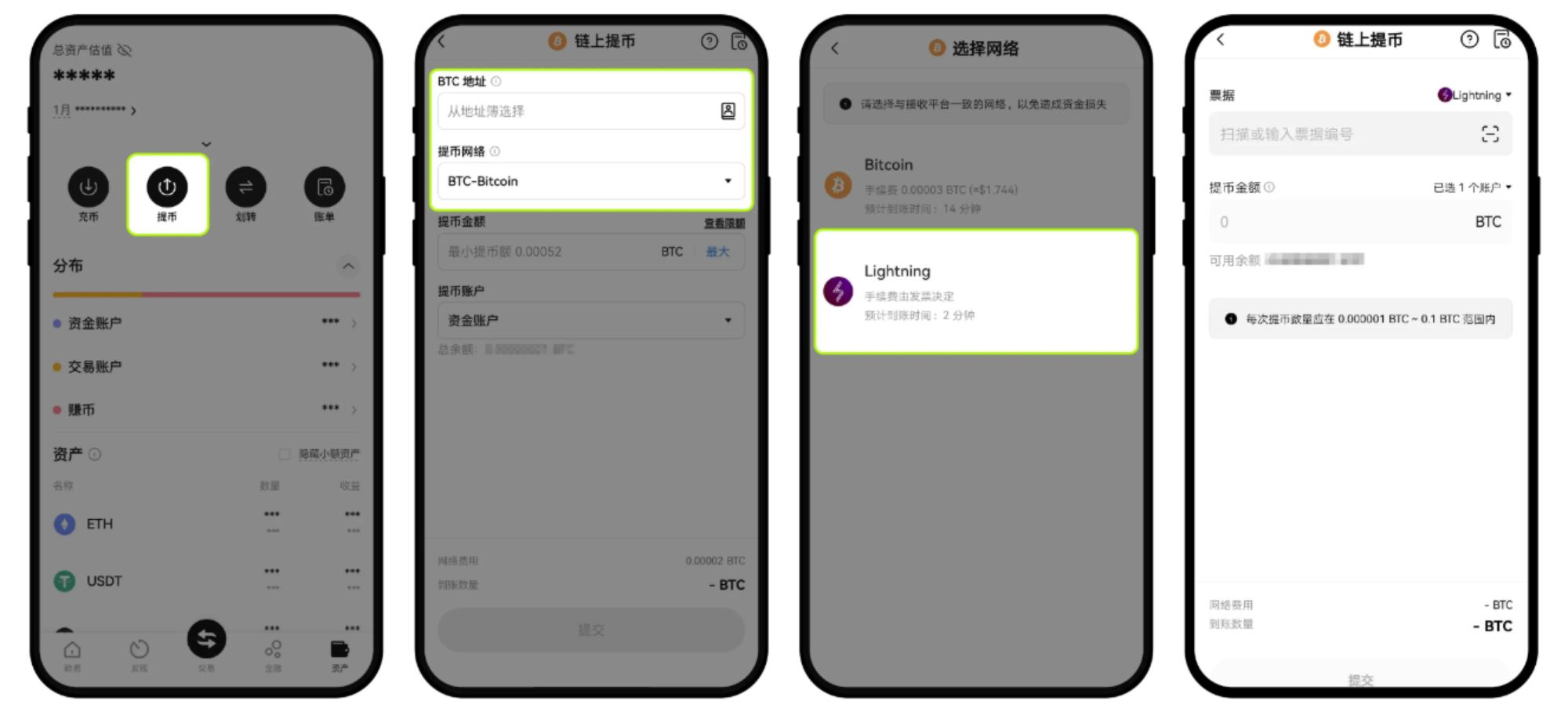 接着在提币网络中找到闪电网络,根据提示输入各项信息并提交即可