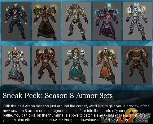 近日,魔兽世界官方网站www.worldofwarcraft.com发布了第八季竞技场套装,