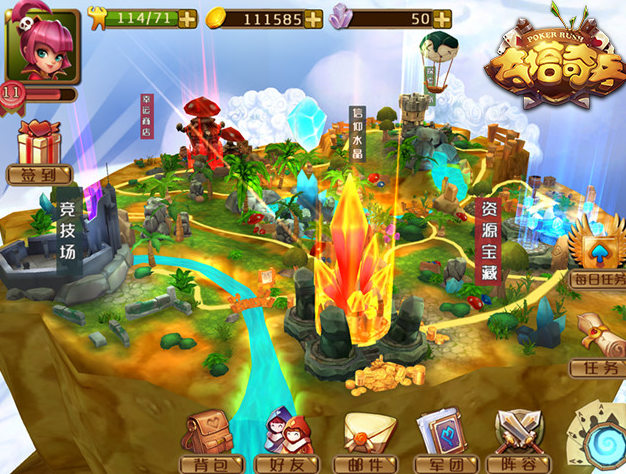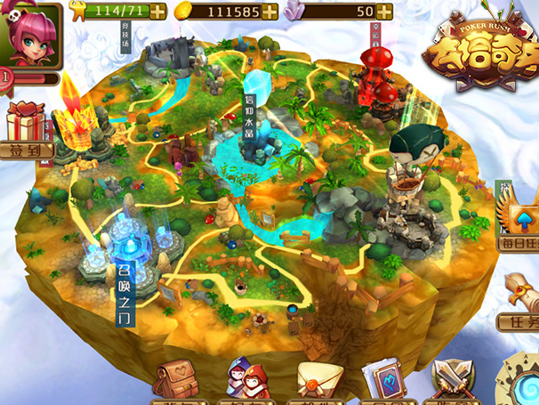 整个扑克大陆可以360度无死角任意切换,任意缩放游戏主场景。上图即为旋转游戏主场景,并切换视角的游戏截图。所有的玩法、资源宝藏等可以一眼看穿,比一般游戏更贴心!
