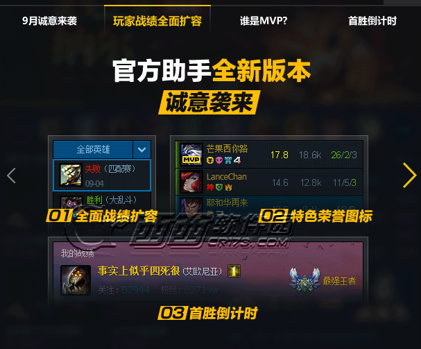 lol官方助手日前发布全新版本,在新版本中将新增加首胜倒计时、战绩扩容等新功能,下边一起来了解一下吧!