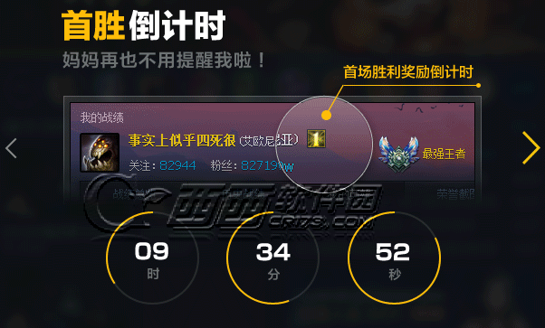 注:在我的战绩中可看到首胜倒计时提示,鼠标停留即可看到倒计时