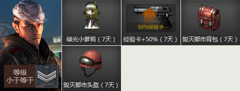 等级在1-15级之间的玩家可以参加本活动符合成长计划资格的玩家绑定大区后即可直接领取经验套装一份;