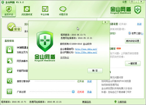 金山毒霸反病毒工程师李铁军介绍,此次金山网盾3.5.2版的推出,为用户提供了更加出色的在线防护体验。增强的修复功能,和包括广告过滤等功能的集合,更使得我们可以在上网过程中屏蔽各类厌烦广告代码。包括“免打扰”模式等细节改变,也看到金山网盾不断通过创新,为用户提供最佳在线防护产品的诚意。