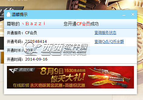 cfQT语音今日更新了兑换cfVIP会员30天的活动哦,从9月16日到9月30日这段时间都可以兑换,玩家还等什么呢!