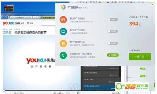 最近有网友为我们推荐了一款广告屏蔽软件——广告助手,该软件刚刚推出,目前版本是1.0.0.1043,大小2.28MB,支持的系统为Windows XP、Windows 7、Windows 8。笔者测试了一下,效果确实比较理想,主流视频网站的视频前广告都能够很好的屏蔽,下面是该网友的体验过程:
